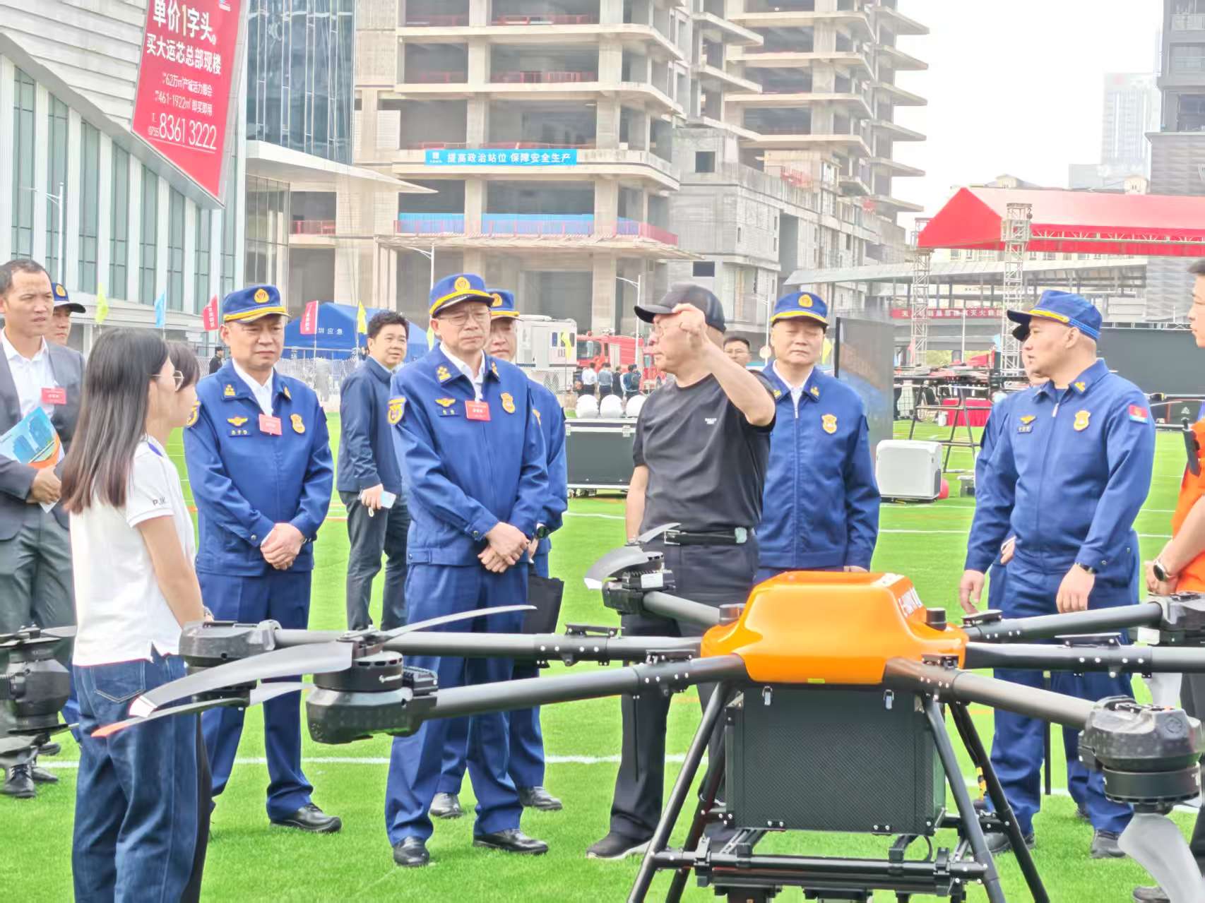 演练中,鲲哥高楼灭火救援智能装备完成高层建筑外部出水控火、外部救援物资输送等项目。期间,团队人员还观摩了多种无人机技术在高层建筑灭火救援中的应用实景,并与同行进行了深入交流,相互借鉴、取长补短。